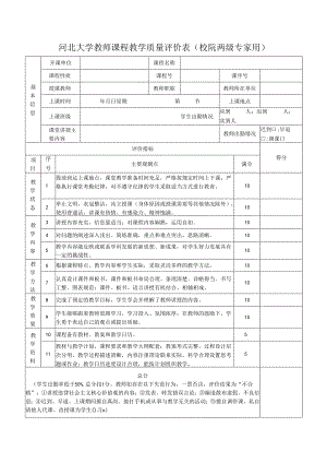 河北大学教师课程教学质量评价表(校院两级专家用).docx
